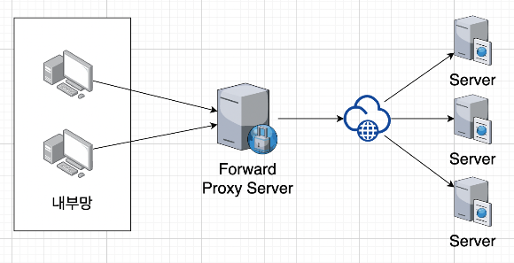 - 내부망에서 요청하는 사이트 주소를 프록시 서버로 전달하고, 프록시 서버가 내용을 받아와 클라이언트에 전달하는 방식
