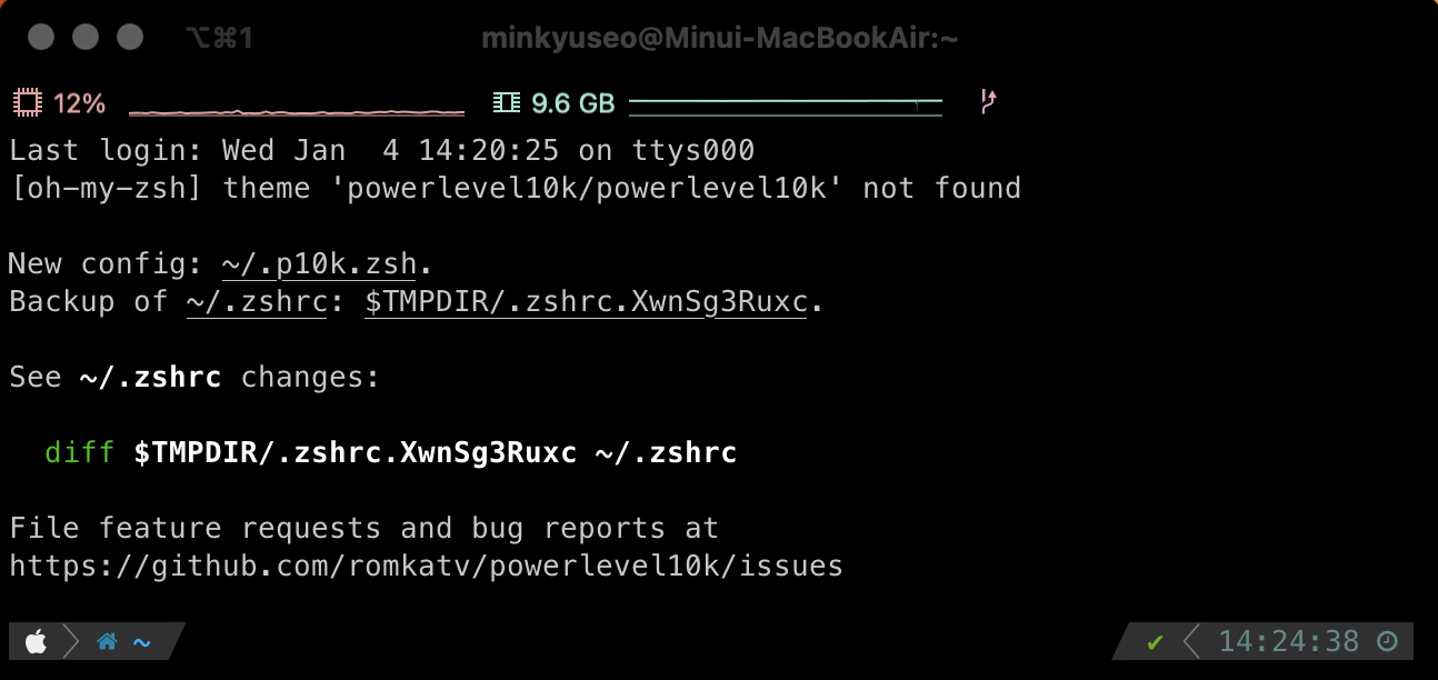 3. https://github.com/romkatv/powerlevel10k#oh-my-zsh 이동하여 power lever 10k설치 - homebrew 이용